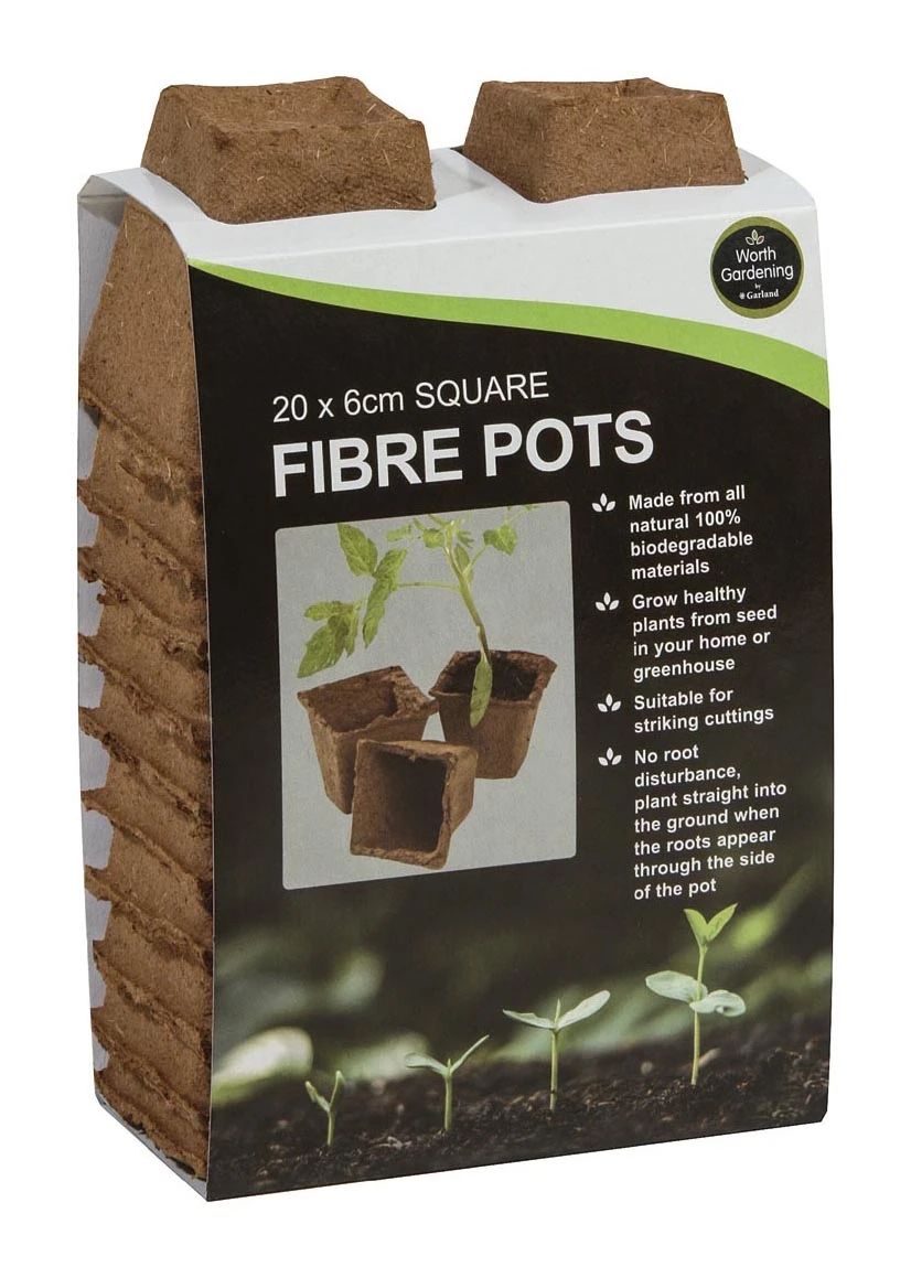 Dieser Artikel enthält 20 und 80 viereckige Fibre Pots mit einem Durchmesser von 6 cm.