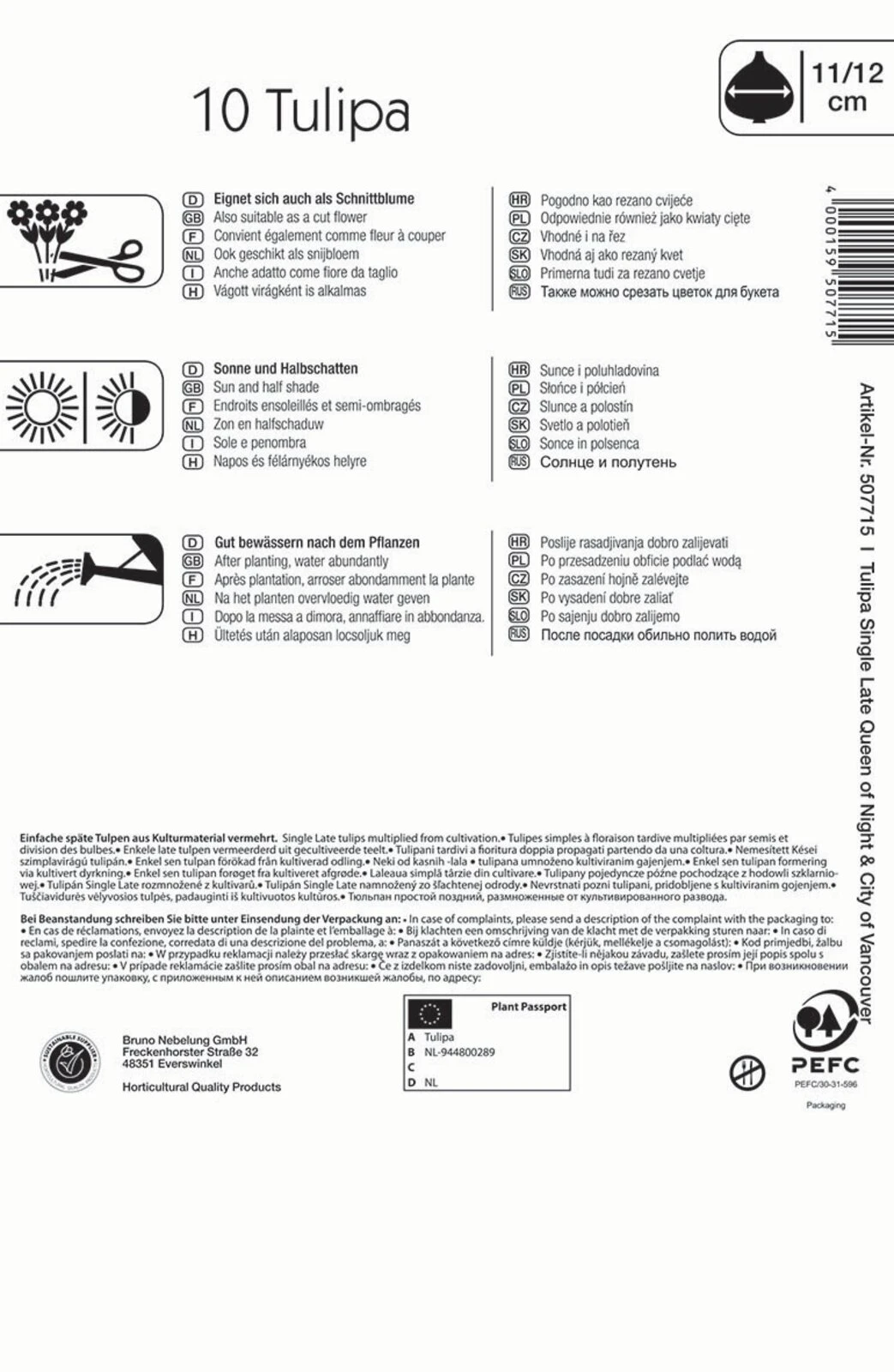Die traumhafte ‚Night and Day‘ Tulpenkombination bestehend aus Einfachen späten Tulpen mit schneeweißen und dunkelvioletten Blüten, steht in einem deutlichen, aber sehr harmonischen Kontrast zueinander. Mit einer Wuchshöhe von 60 cm sind die Tulpen wunderbar für den Schnitt geeignet. Im Garten bevorzugen sie einen sonnigen bis halbschattigen Platz. Ab Mai können die Blüten bestaunt werden.
